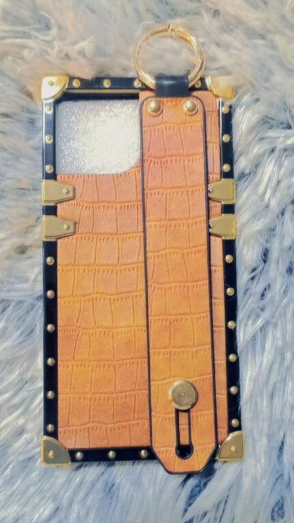 Stylish crocodile texture PU leather case with built-in wrist strap for iPhone 13 Mini. Provides a secure grip, premium look, and reliable protection against scratches and drops.