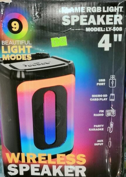 Compact waterproof 10W portable wireless speaker with 1500mAh battery, Hi-Fi stereo sound, karaoke support, and vibrant RGB lighting for outdoor entertainment.