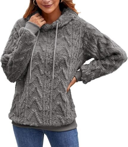 Women’s Teddy Fleece Hoodie – Oversized Fluffy Winter Warm Casual Sweatshirt (Size S)