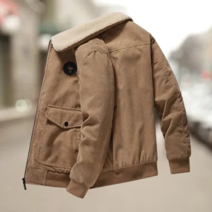Stay cozy in style with this Vintage Corduroy Fluffy Bomber Jacket, featuring a soft corduroy exterior and plush inner lining. Designed for ultimate comfort and a trendy retro look, available in 4XL and classic Tan & Cream colors.